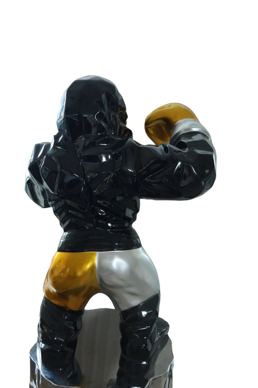 Statue Gorille Boxeur Or 60cm - Resine/Fibre de Verre
