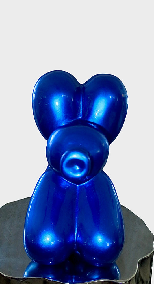 Statue Chien Ballon Bleu Métallique 50cm - Resine/Fibre de Verre